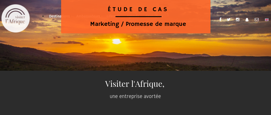 La cible de Visiter l’Afrique sont les jeunes Africains connectés et les expatriés en quête de destinations exotiques, qui ont assez d’argent pour voyager en Afrique – il suffit de faire le calcul du prix du billet d’avion pour commencer à comprendre la tranche économique visée. Il s’agit là d’un mode de vie inaccessible pour la plupart des jeunes du continent, ce qui n’est pas un péché puisque après tout, ce n’est pas un crime de viser des prospects qui ont les moyens de s’offrir notre offre. Encore faudrait-il qu’il y ait une offre. Car la promesse de marque de Visiter l’Afrique, très généraliste, qui s’adresse à la fois à tout le monde et à personne n’a pour but que de « vendre » la visualisation des photos de son compte Instagram.